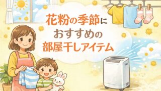 花粉の季節でも安心して部屋干しできるよう、アレルギー家庭のわが家が実際に使っているアイテムや工夫をまとめました。除湿機の使い方や室内干しのポイントを紹介します。